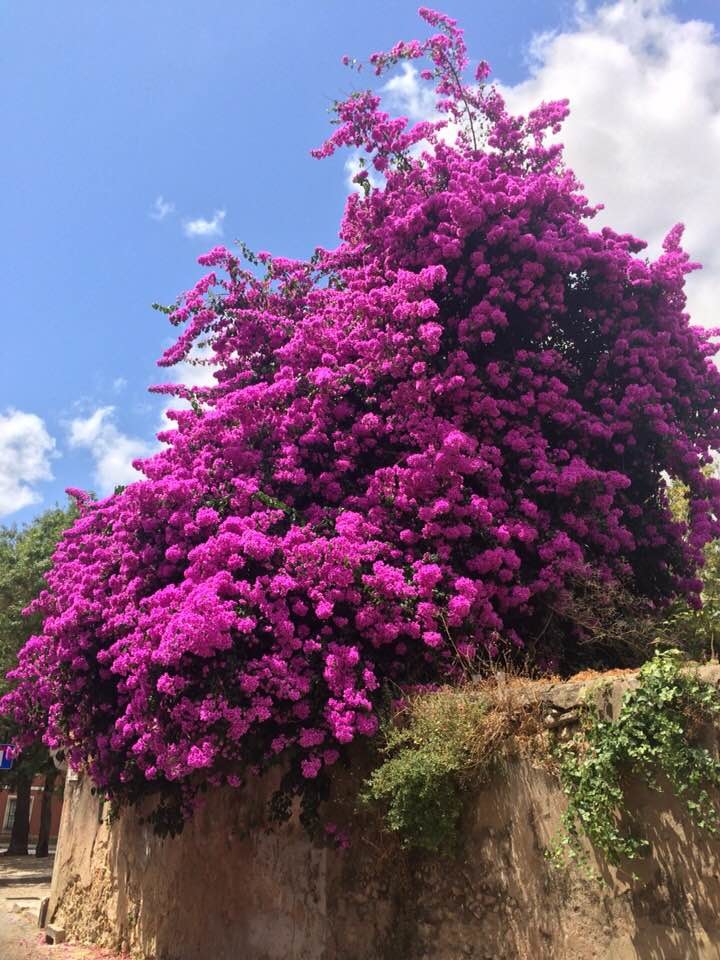 Sexta-feira, dia do almoço semanal com os amigos, e como não era dia 13, "guardei" as flores que nos acompanham desde o parqueamento até à Parreirinha de Carnide. Um pequeno trajecto bastante colorido. Já alguém viu uma buganvília maior que esta? No lado oposto são mais pequenas e de coloração diferente. Até a tipuana ainda guardava algumas das suas flores amarelas. No balcão do restaurante deparámo-nos com um fenómeno, mas não do Entroncamento: uma cebola gigante..... E o peixinho logo a seguir. Como só compareceram quatro, as doses foram divididas e, assim, a factura foi diminuta.... incluindo a gorja, claro. Ficámos muito bem!