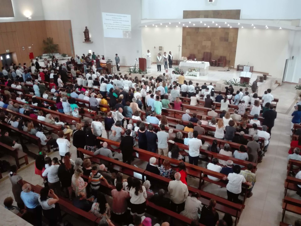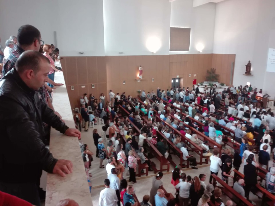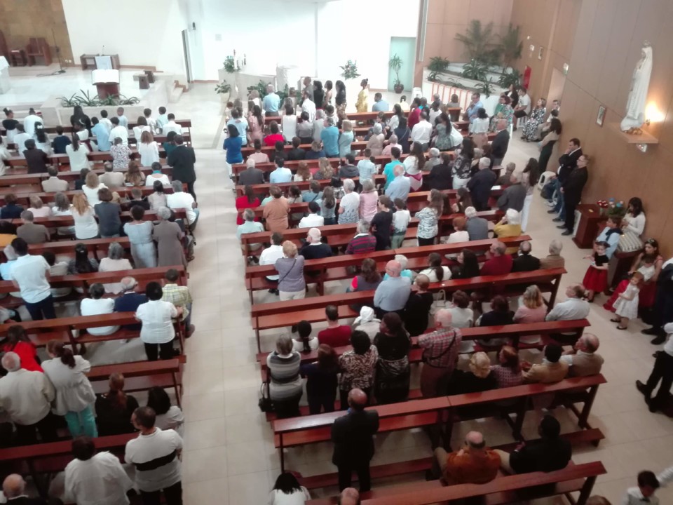 Hoje, dia do Corpo de Deus, a Igreja da Amora estava bem cheia para participar na 1.ª Comunhão de 54 crianças da Catequese. O dia presta-se a olhar para os mistérios que envolvem a nossa vida e um deles é a Eucaristia. Há coisas que não se vêem, mas enriquecem a nossa existência e dão-nos uma ligação ao sobrenatural.