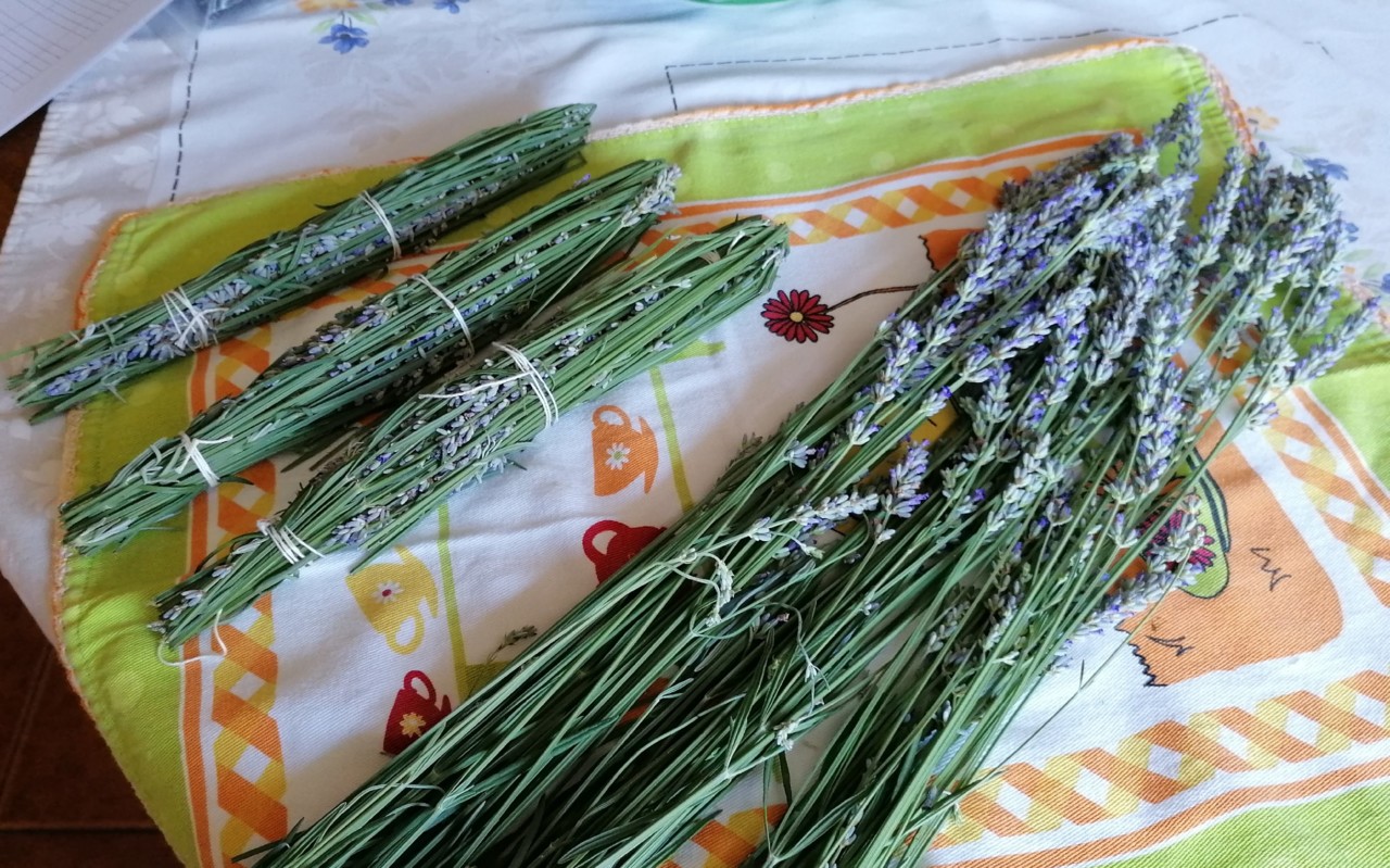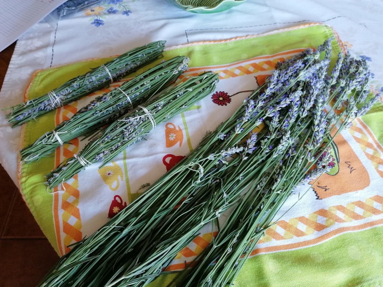 O que eu quero, afinal? Tão simples como isto: vou mostrar-vos as fotos de crescimento da nossa alfazema bem cheirosa, que este ano prolonga a sua existência por obra da vizinha Felicidade; ela ensinou a Antonieta a fazer umas maçarocas para encher da sua fragrância os roupeiros da casa. Aqui estão uns rolinhos já feitos e mais espigões e corolas à espera de mãos modeladoras para completarem o trabalho.